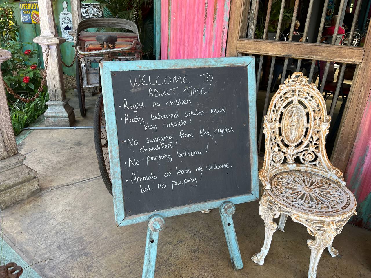 Wir werden versuchen, uns daran zu halten Wir werden versuchen, uns daran zu halten 5. April 2023 su Leider keine Kinder Schlecht erzogene Erwachsene müssen draußen spielen Kein Schaukeln am Kristallleuchter Nicht in den Po kneifen Haustiere an der Leine sind okay, aber kein „Geschäft machen“