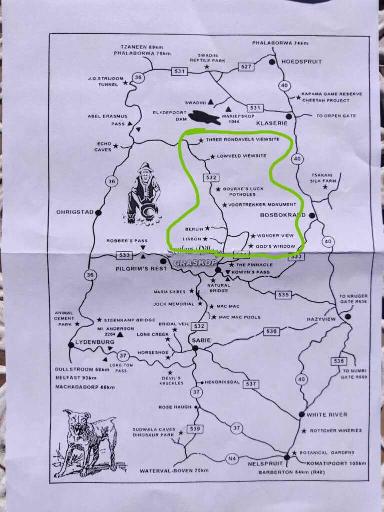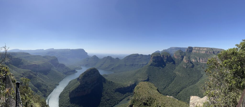 Der 32km lange Canyon ist der drittgrößte auf der Welt. Er zeichnet sich vor allem durch seine großen Höhenunterschiede (bis zu 1.300m) aus. Der Canyon liegt im knapp 300 Quadratkilometer großen Blyde River Canyon Naturreservat, wo die Flüsse Blyde (Freude) und Treur (Trauer) zusammenfließen.